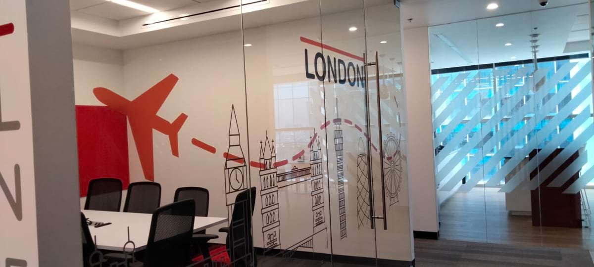 Para las oficinas, diseñamos un ambiente que equilibra la identidad corporativa con la calidez necesaria para un espacio de trabajo. Abarcamos paredes, puertas y cristales, personalizando cada elemento para que se integre perfectamente con la función de cada área operativa. El resultado es un entorno que inspira productividad, fomenta la colaboración y hace que tanto el personal como los visitantes se sientan cómodos.